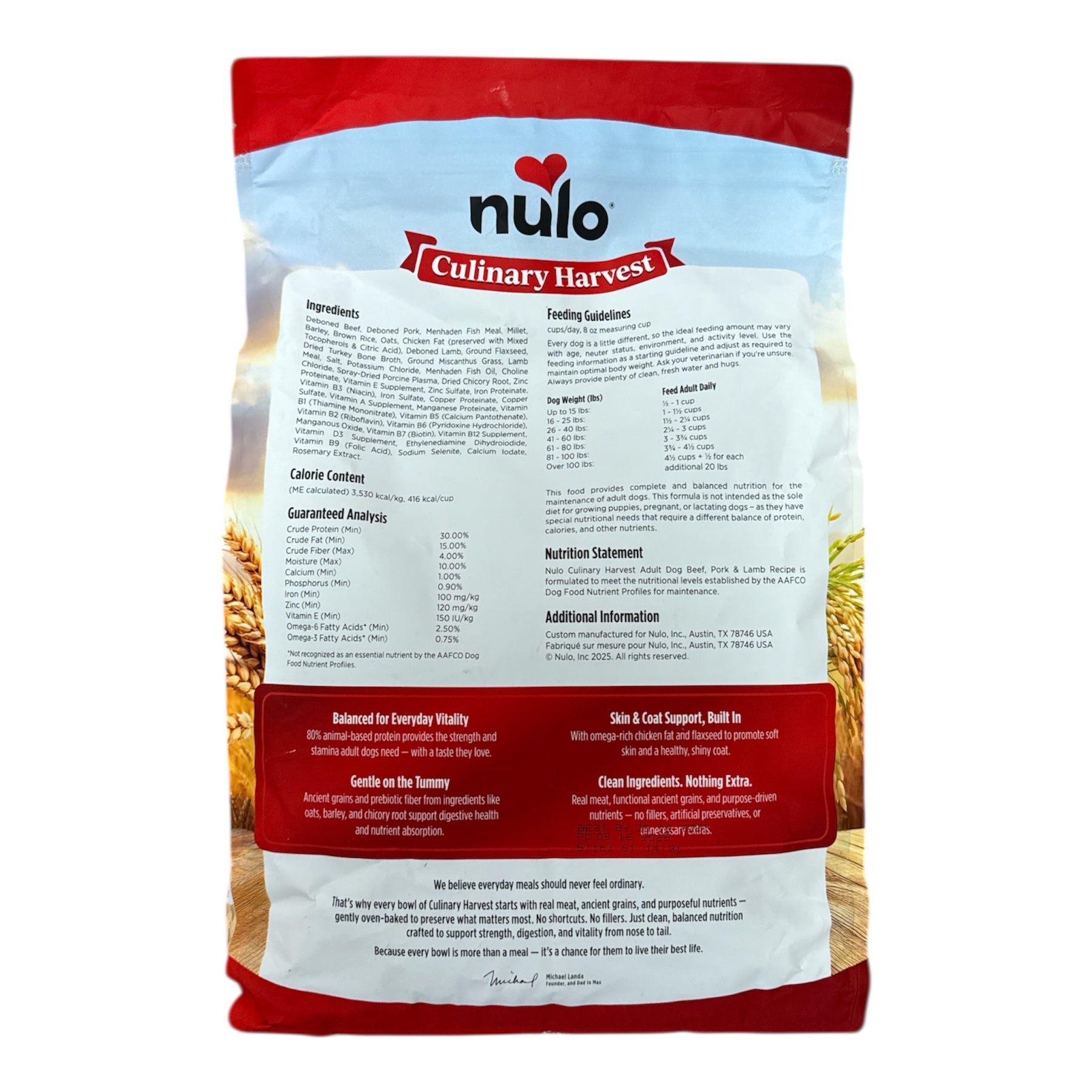 Hearty red meats such as beef, pork, and lamb are oven-baked and finished with bone broth for a deep, savory taste. This recipe is high in animal-based protein to fuel active lifestyles, plus fiber and omegas to promote gut health and coat shine. This is the perfect nutrient-rich choice for adult dogs.